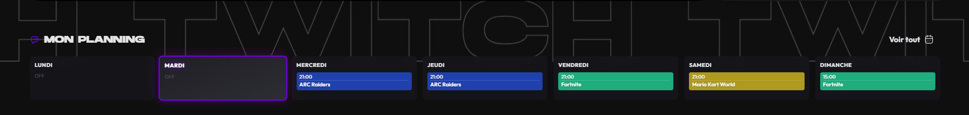 Le planning d'accueil entièrement revu pour l'occasion avec un aperçu simple du jour et des différents streams durant la semaine (de quoi bien savoir quand il y a un stream).