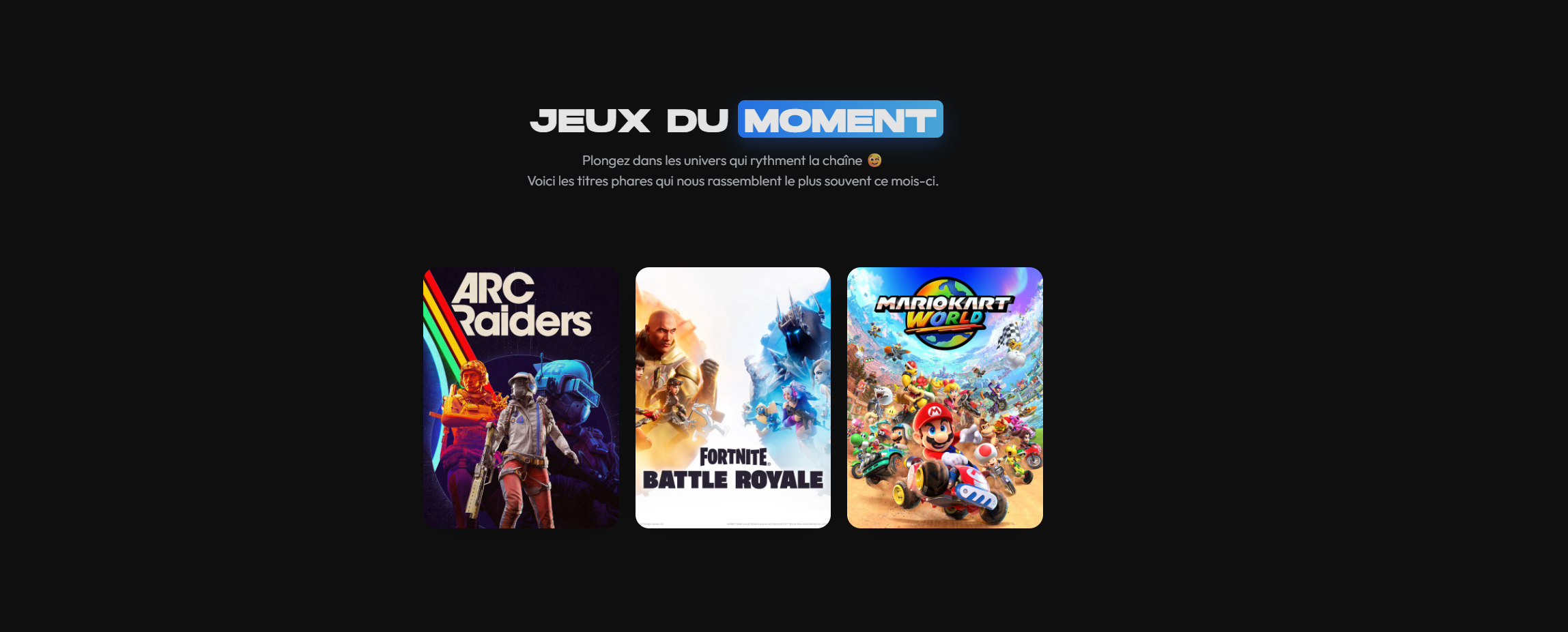 Alors là, c'est le best des systèmes, c'est un élément qui glisse sur 30 jours, affichant les jeux les plus streamés durant ce laps de temps. De quoi savoir directement à quoi s'attendre en allant sur la chaine !