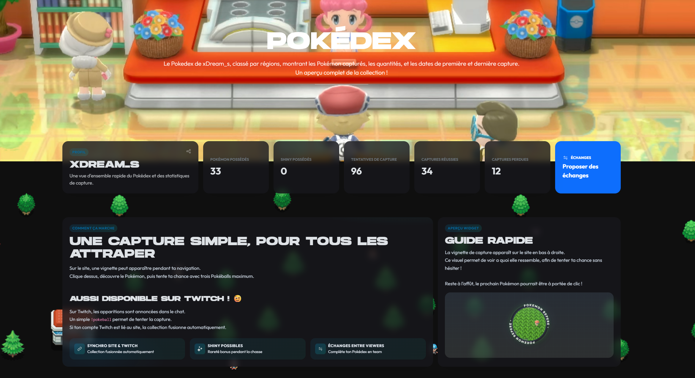 Le fonctionnement en lui-même reste très simple, vous pouvez en capturer sur le site mais aussi sur Twitch. L'intégralité est connectée, donc si vous capturez sur Twitch, ils vont aller s'ajouter sur le site et c'est à partir de là que vous pourrez compléter votre Pokédex 🥳