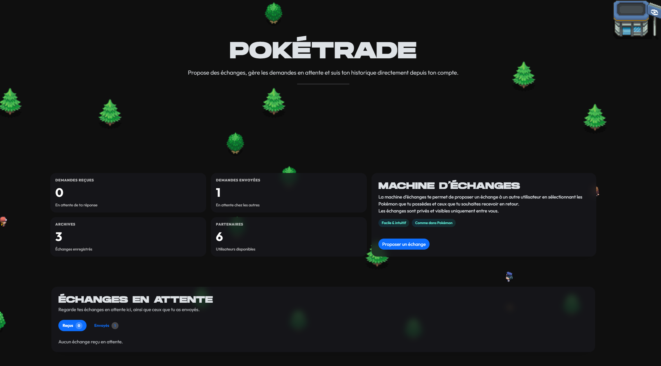 Vous pouvez proposer vos Pokémon aux autres membres du site ou en demander à ceux en possédant.