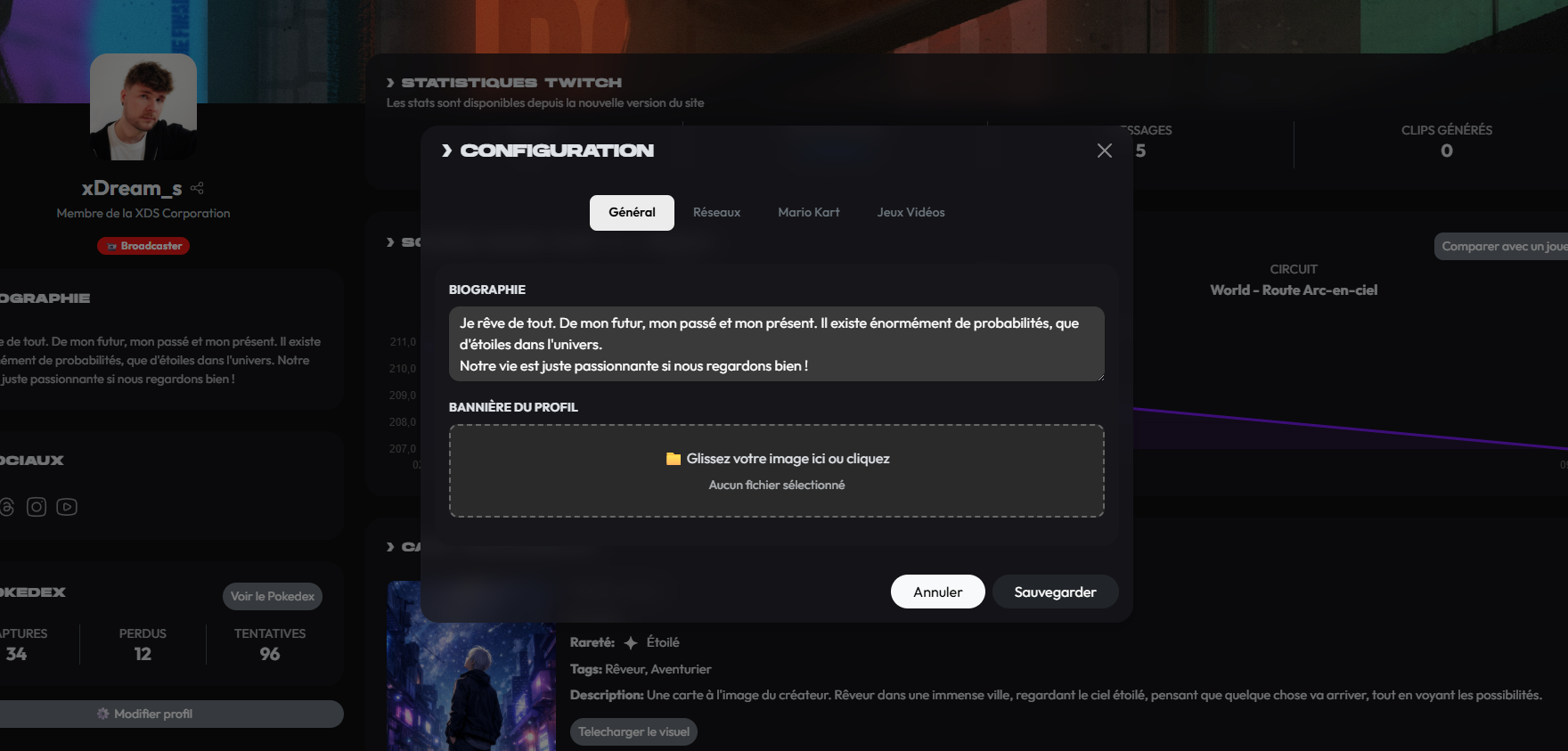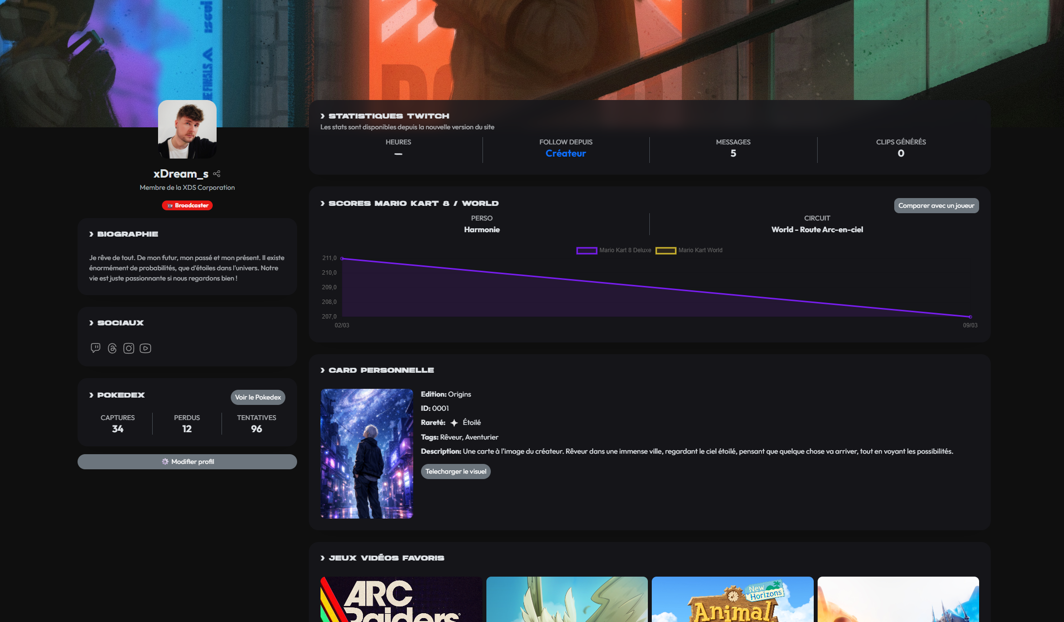 Mais ce n'est pas tout, car c'est ici que vous retrouverez vos stats sur Mario Kart 8 Deluxe et World durant les Samedi Des Rêves 🤯 Dont vous pourrez les comparer à d'autres participants, histoire de voir qui est le meilleur !